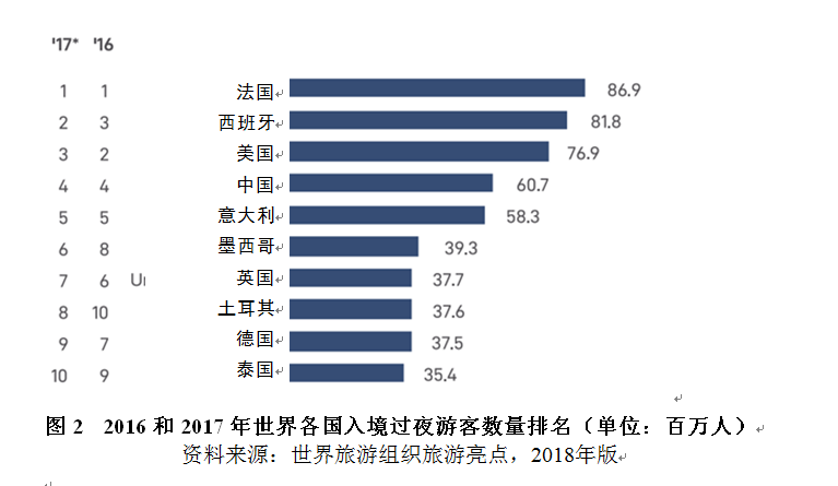 China provides the world with a steady growth in passenger flow. According to the World Tourism Organization, the growth in the number of tourists in the Asia-Pacific region is mainly due to the stable and strong demand within the region, and China has made the most outstanding contribution to the development of the tourism market. Since 2012, China has been one of the world's leading outbound tourism consumption countries. In 2017, China received a total of 60.74 million international overnight tourists, ranking fourth in the world, second only to France, Spain and the United States, with a growth rate of 2.5%. In 2017, China received 18.8% of the total number of international tourists in the Asia-Pacific region, and tourism revenue accounted for 8.4% of the total in the Asia-Pacific region.