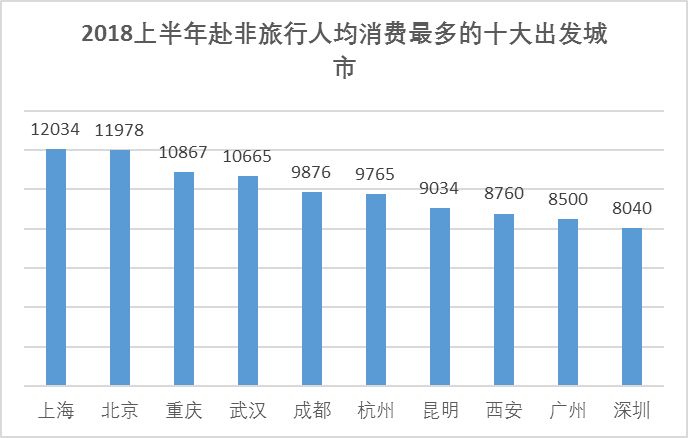 6. The average per capita spending on tourism to Africa is high, with Shanghai tourists being the most expensive
