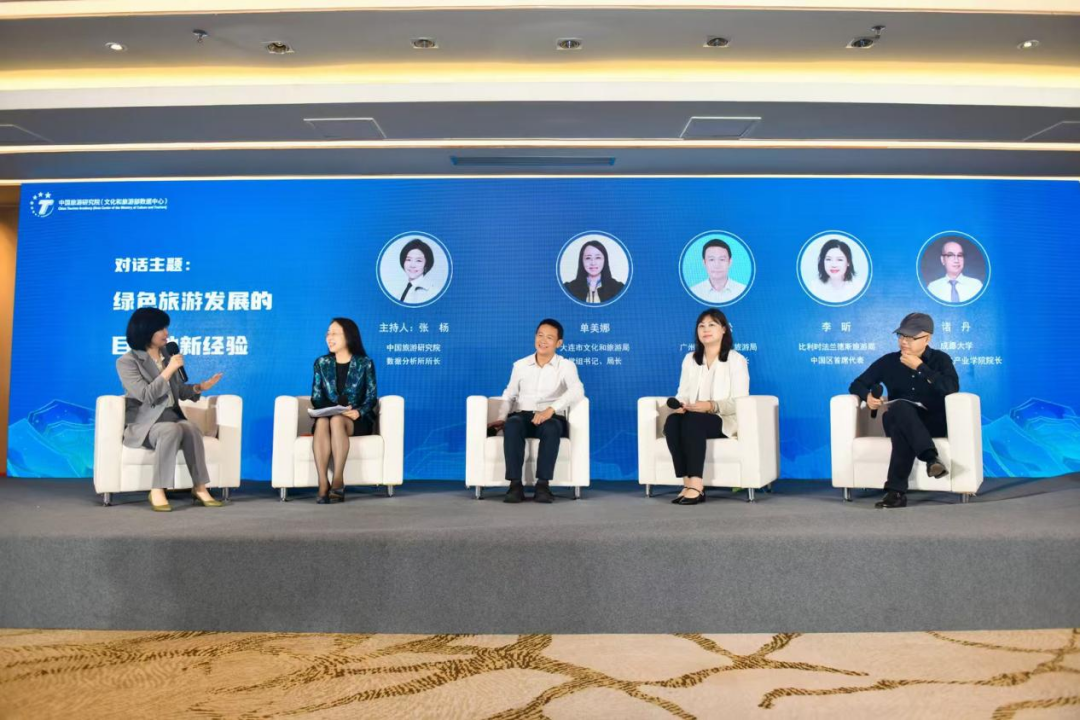 “绿色旅游开展的目的地新经验”专题对话环节,张杨所长与大连市文化和旅游局党组书记、局长单美娜,广州市文化广电旅游局党组成员、副局长吴青松,比利时法兰德斯旅游局中国区首席代表李昕,成都大学旅游与文化产业学院院长诸丹进行了专题研讨,对话嘉宾从对绿色旅游的内涵认知、目的地建设顶层设计、产品开发、项目引进、供给激励、公众引导、未来趋势等各个方面,分享了各自城市的做法与亮点。