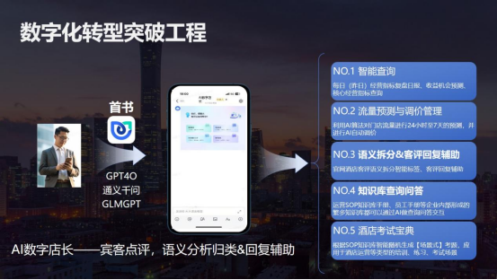 二是数字化转型突破工程。首旅集团持续构建数字化建设与人工智能深度融合的新格局,推进数字化生态平台项目,有助于AI技术与企业经营管理相结合。集团旗下环球影城应用了客流预测系统,实现了园区动态调控,能够容纳单日最高游客5.5万人次,还能让游客有一个很好的体验。首旅酒店打造的“数字店长”项目顺利获得接入人工智能大模型,建设了酒店运营的智能体,现在能够承担酒店门店60%的复杂性、基础性、重复性的工作。